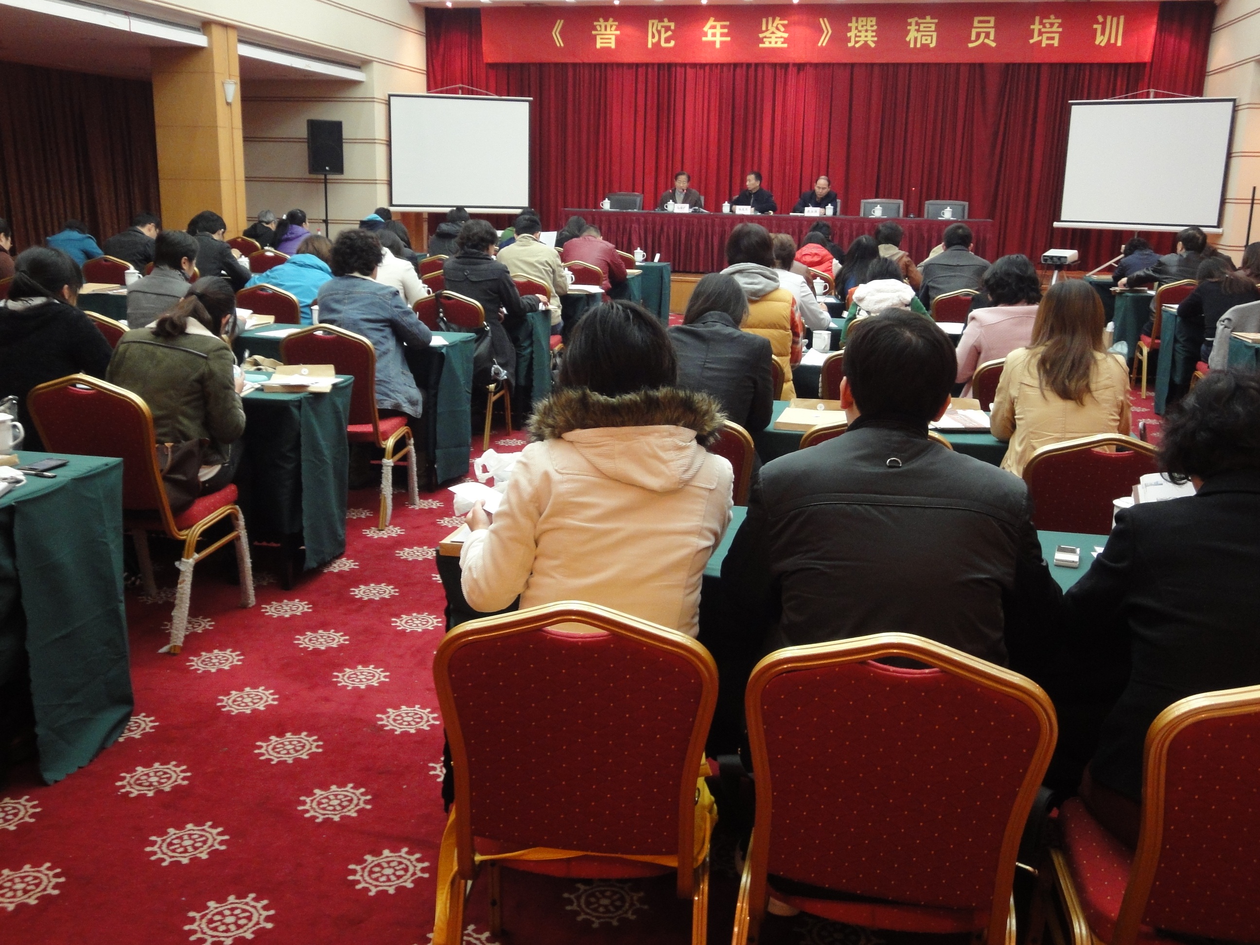 2012年11月21/22日,普陀区地方志办公室在上海青浦举行《普陀年鉴(2013)》撰稿员培训会,会议由普陀区地方志办公室副主任康国强主持,普陀区地方志办公室主任王卫国、普陀区档案局副局长陈张良出席,市地方志年鉴办教授马学新、《普陀年鉴(2012)》执行主编侯龙其应邀出席并授课辅导。全区各撰稿部门、单位年鉴撰稿员80余人参加培训。