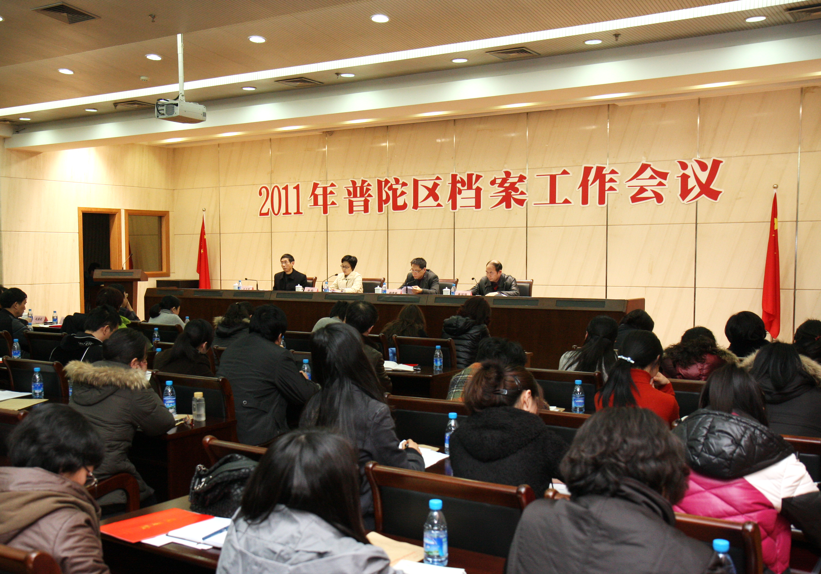 普陀区2011年档案工作会议于3月1日召开。上海市档案局副局长杨智敏、普陀区副区长景莹出席会议并作重要讲话,副区长景莹向档案捐赠者颁发了荣誉证书。区机关各单位、各街道镇以及企事业单位档案工作分管领导、档案干部共180余人参加会议。