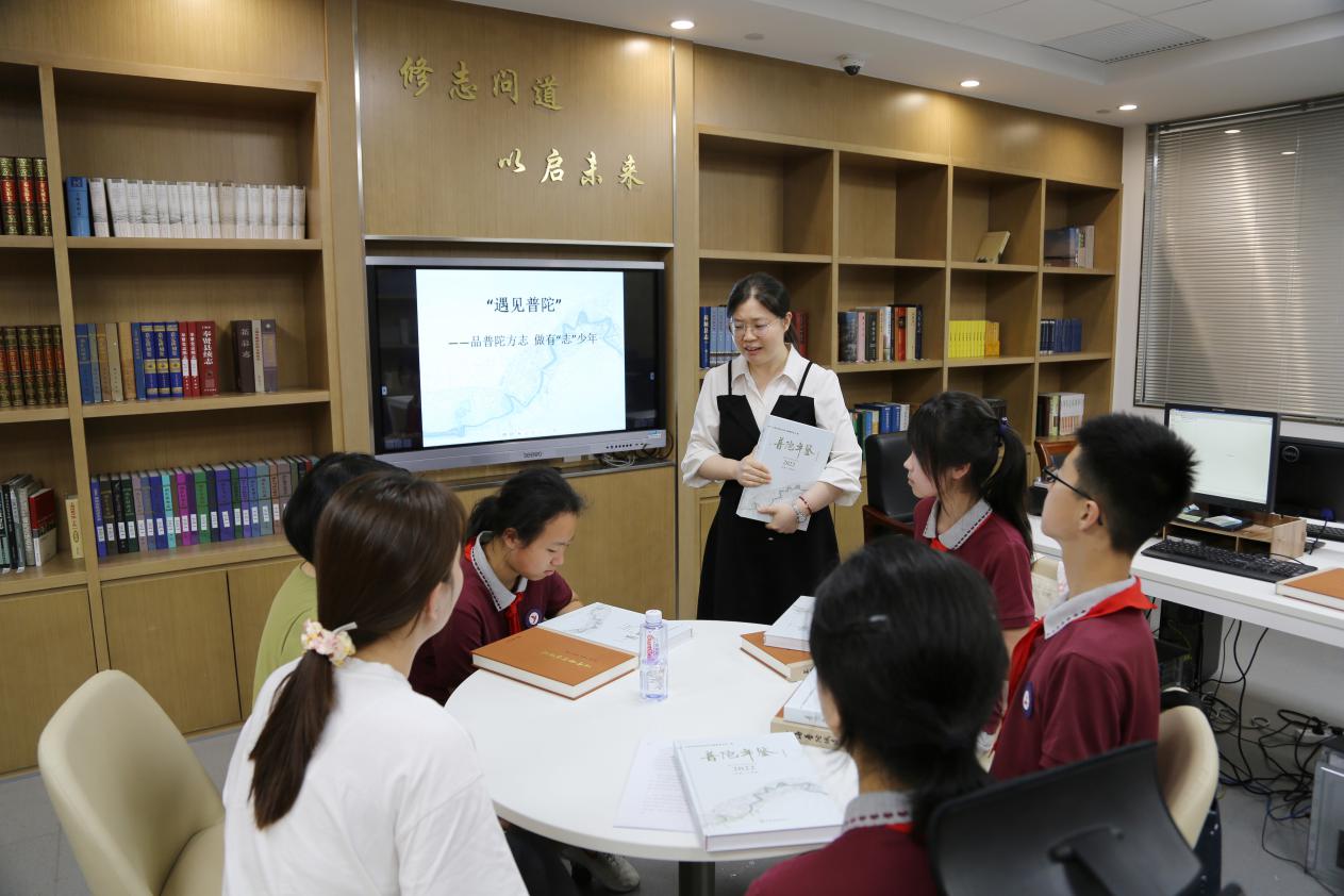 6月25—30日,共建单位华东师范大学第四附属中学选派6名青少年学子到普陀区档案局(馆)和地方志办公室开展暑期社会实践。区方志办编研人员作为社会实践导师,精心设计主题为“品普陀方志 做有‘志’青少年”为主题的职业体验科目。组织青少年参观“普陀记忆”档案史料陈列展、胡振郎艺术特展厅,讲解普陀区的发展历史和人文风貌;指导青少年开展档案整理、窗口为民服务、方志图书编目等职业体验活动;开设年鉴知识互动小课堂,向青少年学子讲解年鉴基本知识,并赠阅《上海普陀城区史》《普陀年鉴(2022)》。