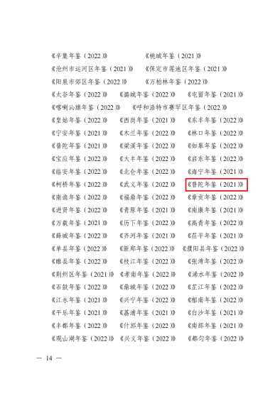2023年12月29日,中国地方志工作办公室、中国地方志学会印发《关于对第九届全国地方志优秀成果(年鉴类)的通报表扬》,《普陀年鉴(2021)》获评第九届全国地方志优秀成果(年鉴类)县级综合年鉴三等年鉴。